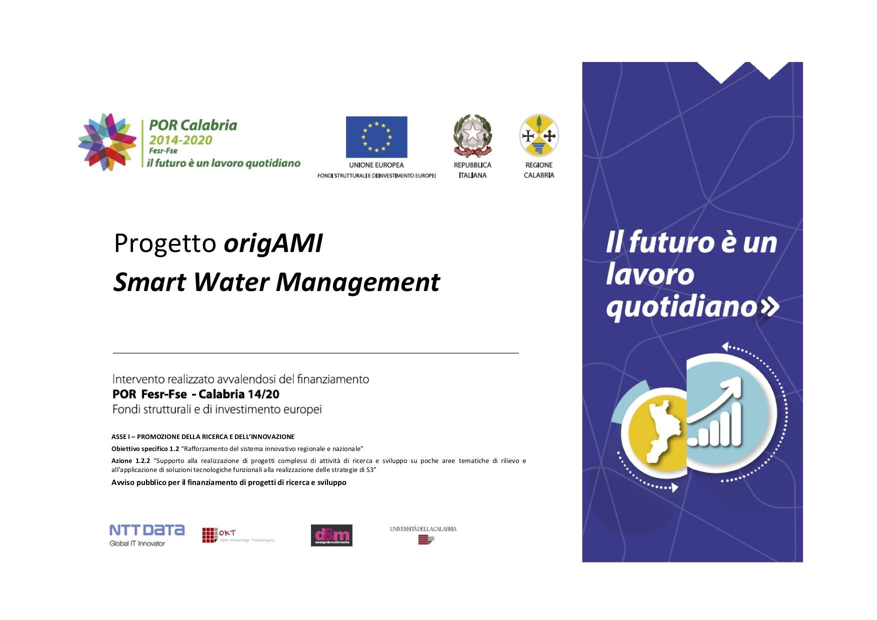 origAMI - original Advanced Metering Infrastructure è un sistema software integrato e multipiattaforma per la modellazione, il monitoraggio ed il controllo di sistemi acquedottistici che offre, in un unico applicativo, strumenti tecnici e gestionali per progettisti, amministratori di rete ed utenti finali. Il framework si basa su un modello logico infrastrutturale, coerente con il paradigma “Internet of things” (IoT), che declina in modo nuovo il concetto di Advanced Metering Infrastructure (AMI), sfruttando moderne reti di sensori ed attuatori georeferenziati che abilitano al monitoraggio real-time ed alla possibilità di agire sulla stessa rete da remoto, nonché alla possibilità di automatizzare le fasi di lettura e fatturazione dei consumi idrici.